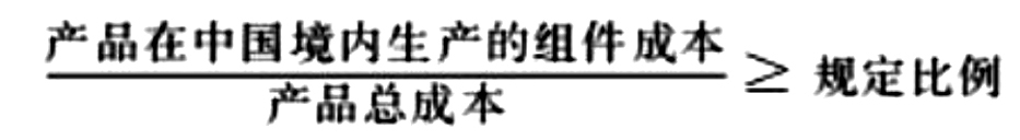 产品在中国境内生产的组件成本占比应当达到规定比例,计算公式为: